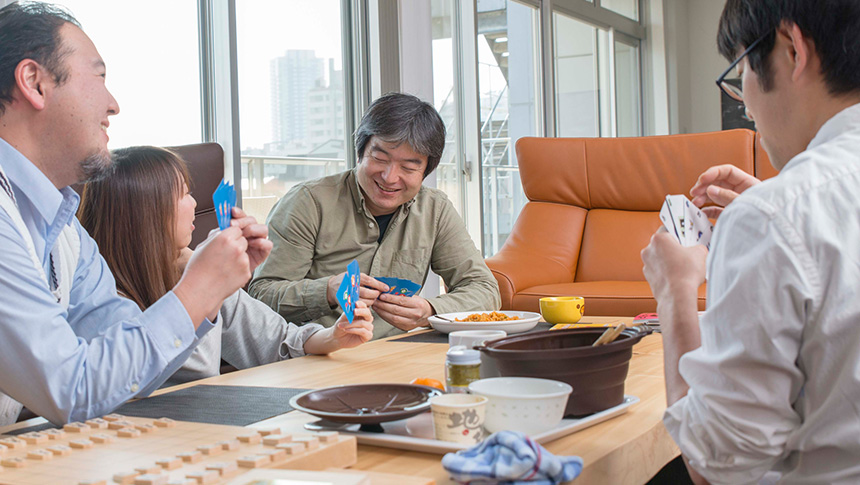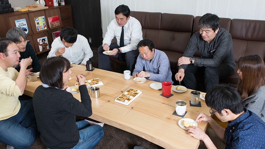 昼休みはランチはオフィスでとる人が多いです。遊んだりおしゃべりしたり。