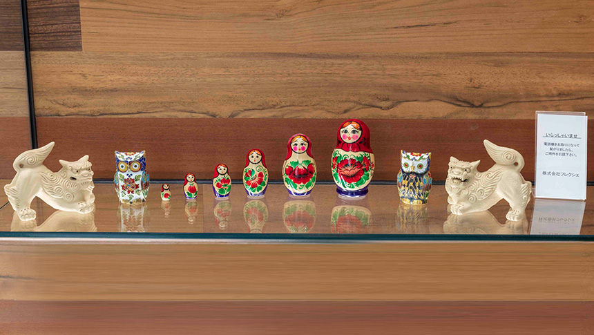 社員旅行で買ってきたお土産がオフィスの入口にズラリ。