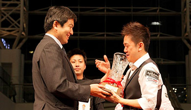 おめでとうございます(笑)。過去には『FLEXSCHE Cup』というプロビリヤードトーナメントのタイトルスポンサーをされましたね。そこで取材していた私(ビリヤード雑誌の編集者)が初めてお目にかかったのはそのときでした。