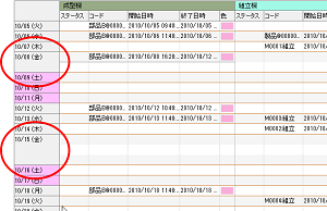 日の区切りで表示しているとき、同一日の行ヘッダをマージしました。また、曜日を表示するようにしました。