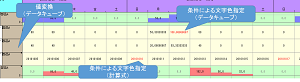 データキューブの内容を表示する際、条件に応じた文字色を指定できるようになりました。データキューブの値をそのまま出力するだけでなく、計算式を経由し任意に変換できるようになりました。また、計算式による表示においても、文字色を指定できるようになりました。