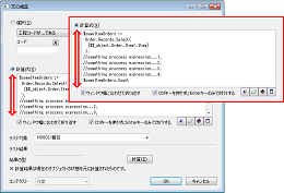 従来は複数行の計算式を入力するためにはそのためのダイアログを別途開かなくてはなりませんでしたが、計算式入力欄に直接複数行を入力できるようになりました。また、可変サイズになったので計算式欄をさらに大きく使うこともできます。