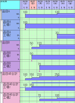 これにより、たとえば内作と外注など、工程数の異なる複数の生産手段がある場合にも、望ましい方を自動的に採用する計画を立案できます。
