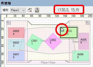 マウスカーソル位置の作業場における座標を、作業場パネルのステータスバーに表示できるようになりました。様々な箇所に対して作業場での座標を調べるのに便利です。