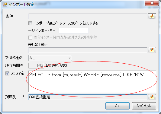 といったSQL文を指定することで、FLEXSCHEがデータを受け取る前段階でフィルタリングすることができます。 従来はすべてのレコードをFLEXSCHE側で精査しながら取捨するためDBからの取得コストがかかっていました。 データが多ければ多いほど恩恵は大きくなります。