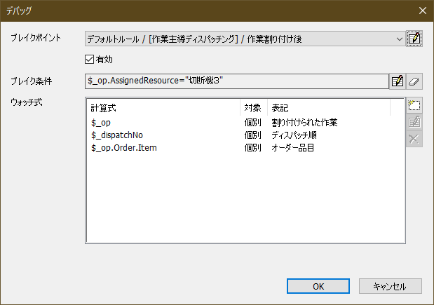 スケジューリングルールの構築を進めていくと、スケジューリング結果が想定と異なるときに、そうなった原因を突き止めることが困難な場合がしばしばあります。 そのような状況においては、スケジューリング処理の途中で一時停止(=ブレイク)して、状態をじっくりと観察したくなるでしょう。