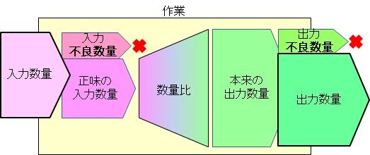 消費品目に対して不良数量を指定すると、その分を減じた数量が実際の製造に利用された正味の数量とみなされます。