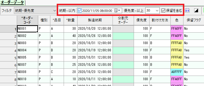 「納期遅れ最小化再割り付け」メソッドの設定方法