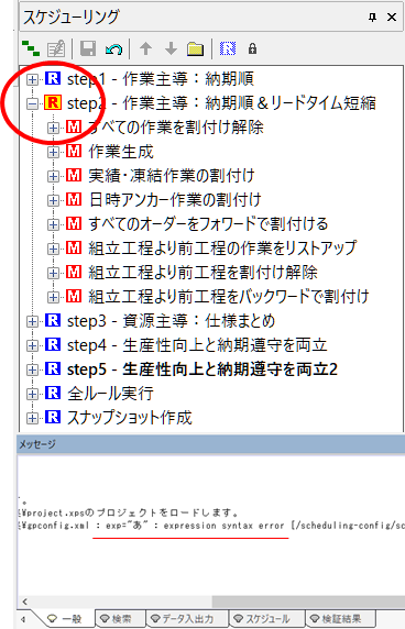 計算式の不整合などで、読込み時にエラー状態となってしまっているスケジューリングルールについては従来からメッセージパネルにその旨が報告されています。
