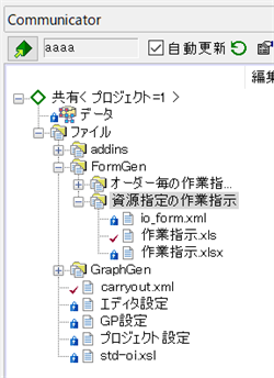 Communicatorパネルでは共有したファイルはフォルダ階層とともに表現されます。