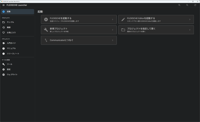 画面の拡大縮小、履歴やお気に入りのプロジェクトの情報を再読み込みが可能です。 また、Windowsの設定のダークモードに対応しています。
