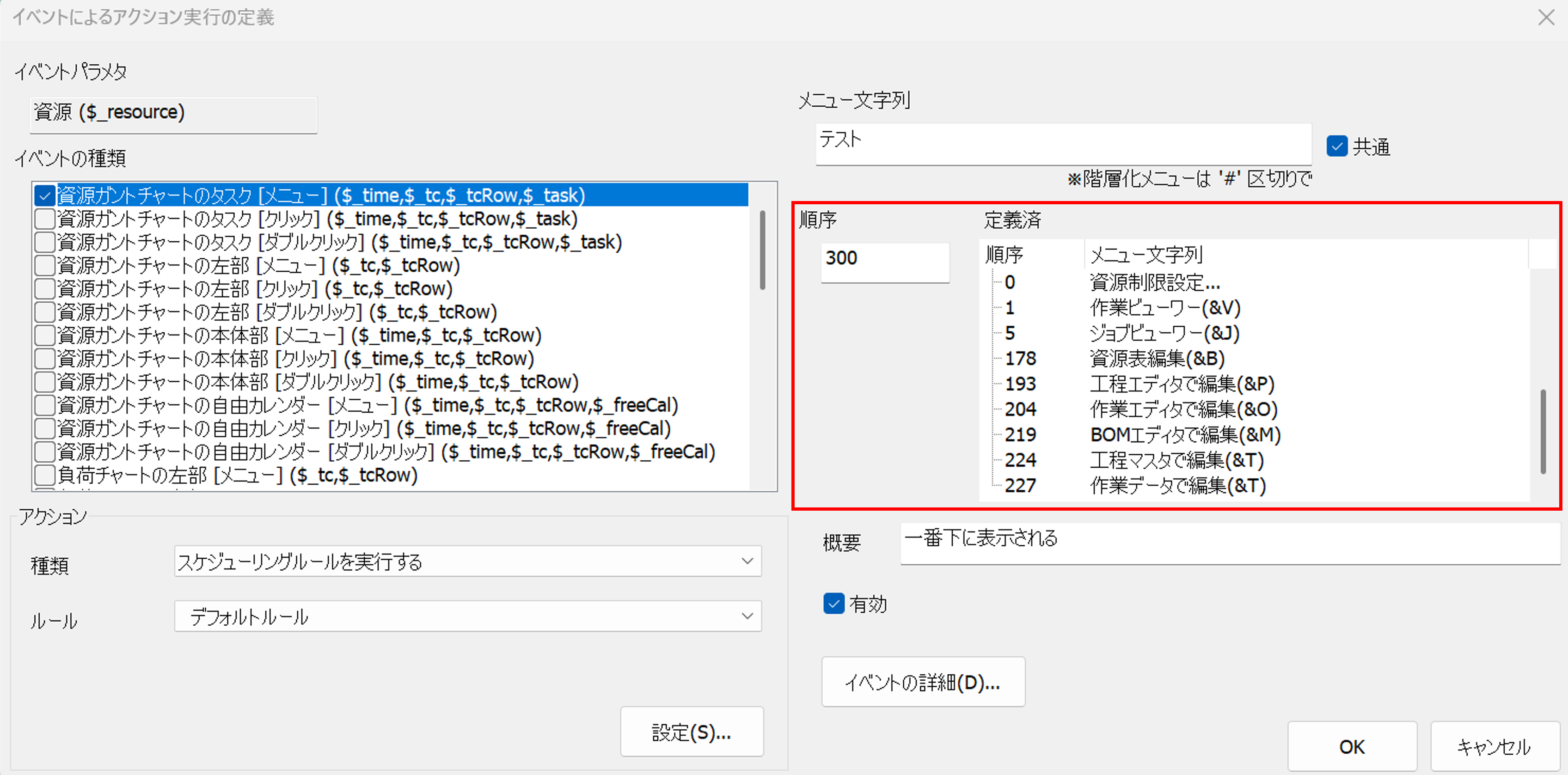 これにより、例えば段取りパートに人手が必要な場合でも実際の業務フローに沿ったかたちでモデル化できるようになります。副資源の稼働状況をより現実的に反映することで、計画の精度と実行可能性が一層向上します。