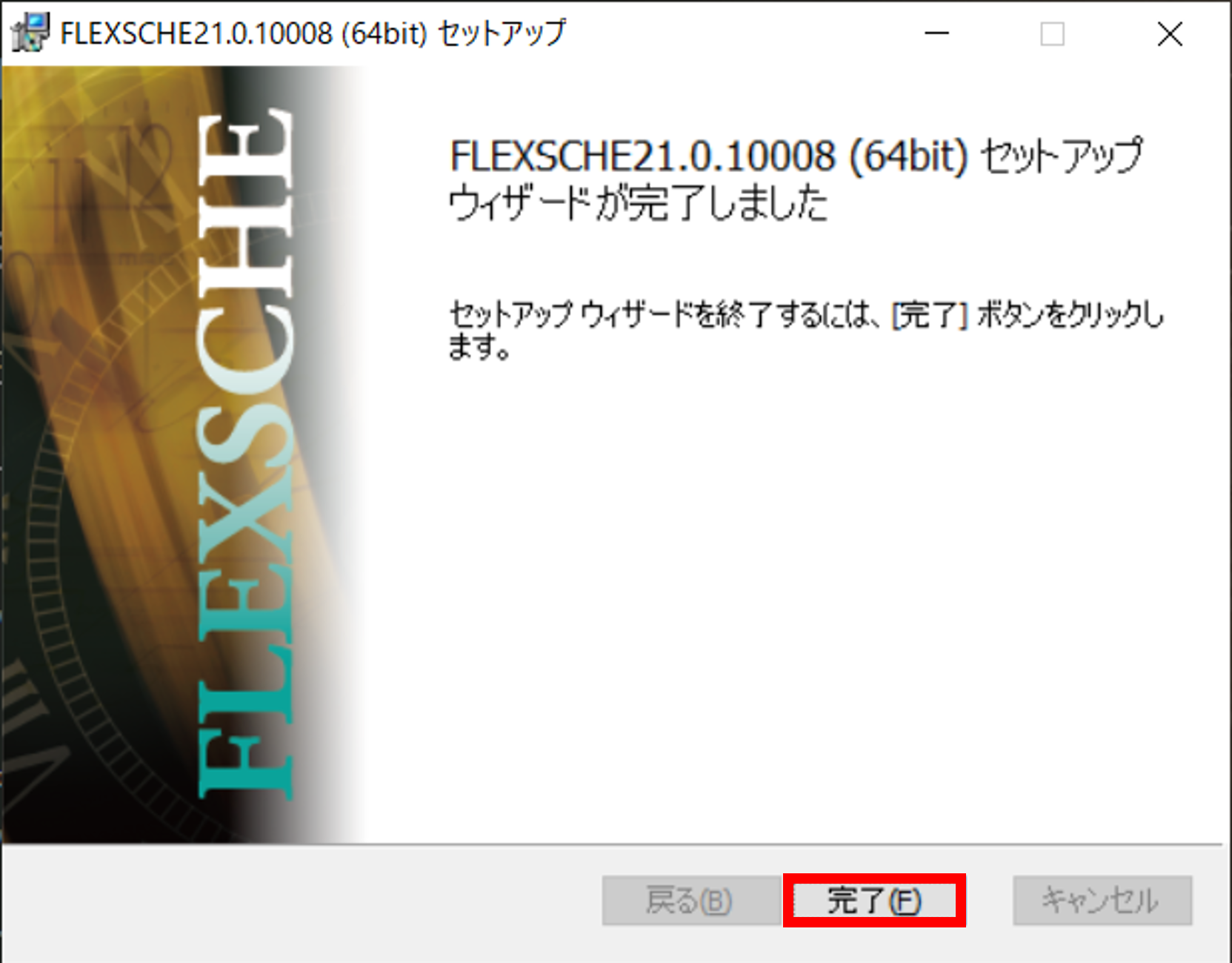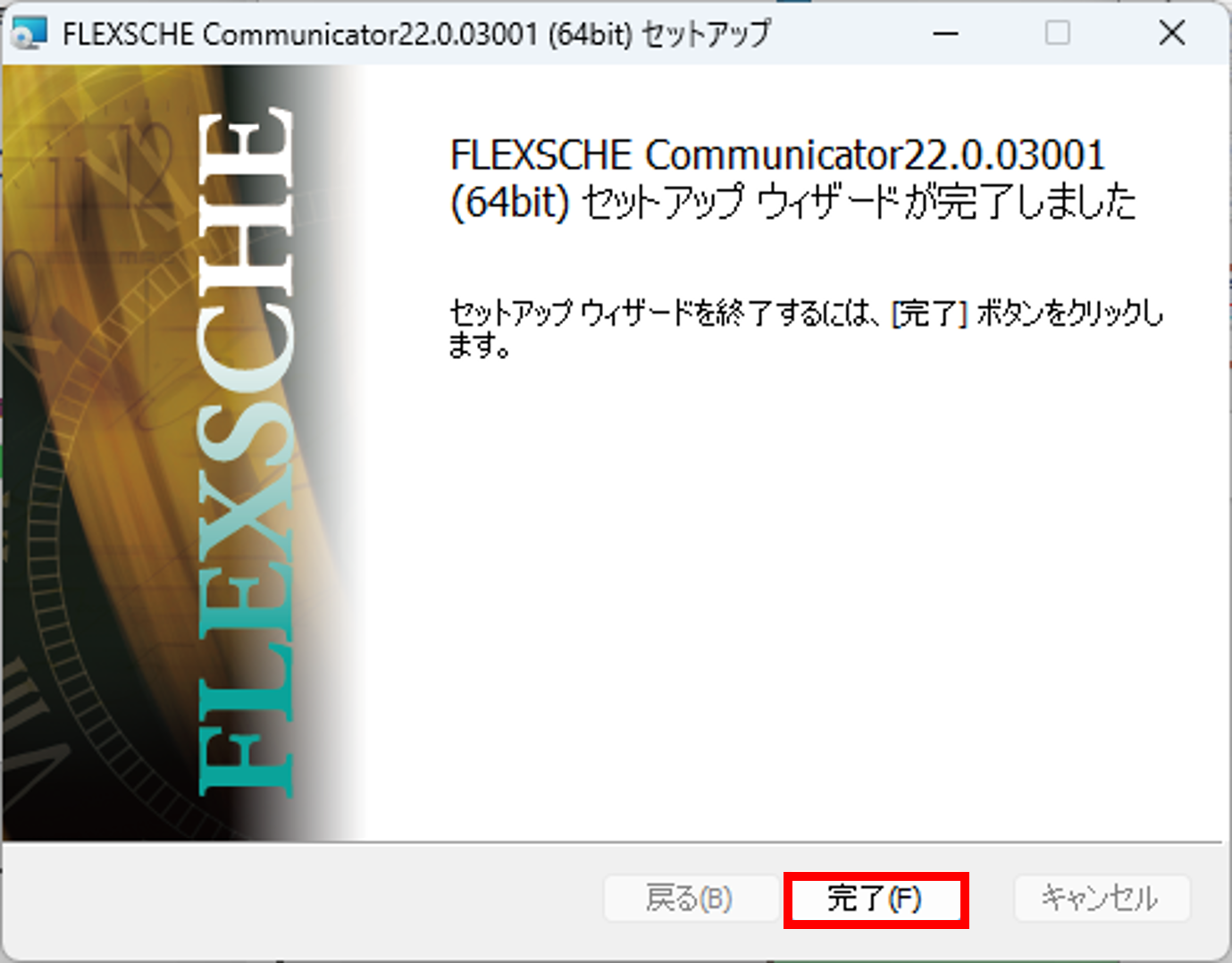 [完了]を選択してください。これでFLEXSCHE Communicatorのインストールは完了しました