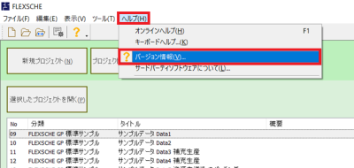 【3】FLEXSCHEを起動し、[ヘルプ]から[バージョン情報] を開き、ライセンスキーの内容が更新されていることをご確認ください。