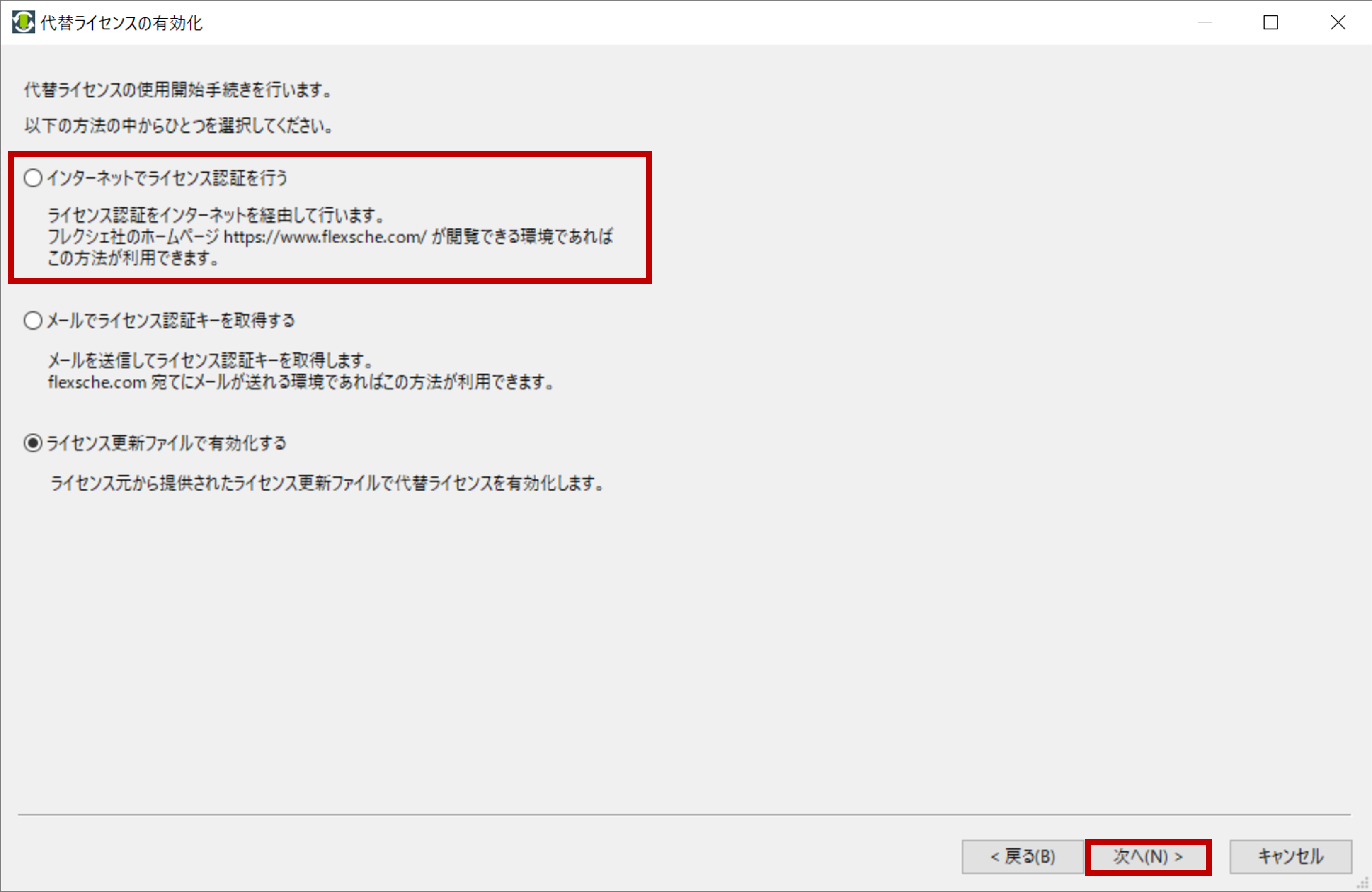インターネット経由でライセンスを更新する