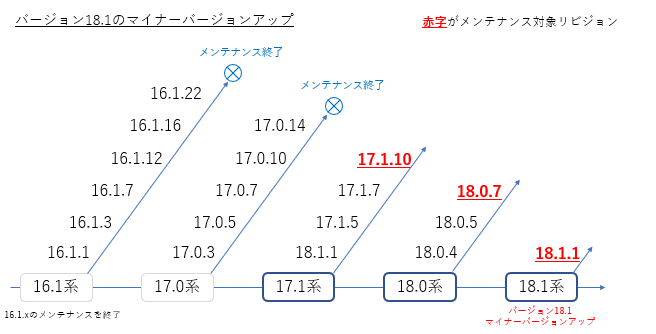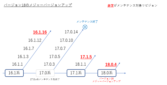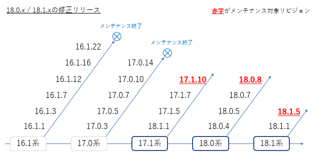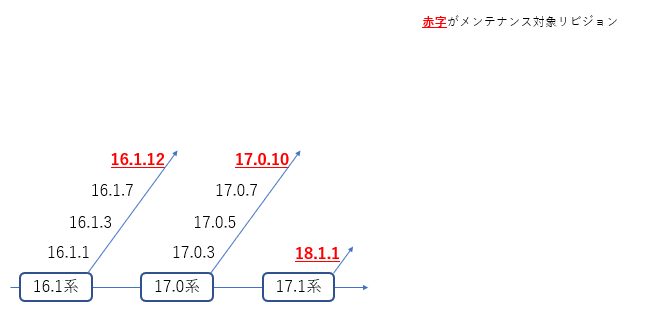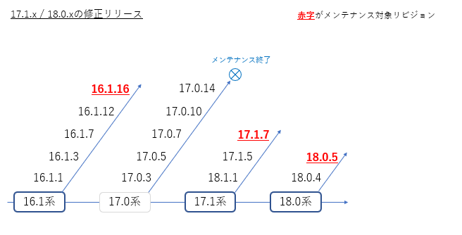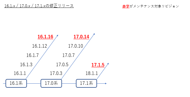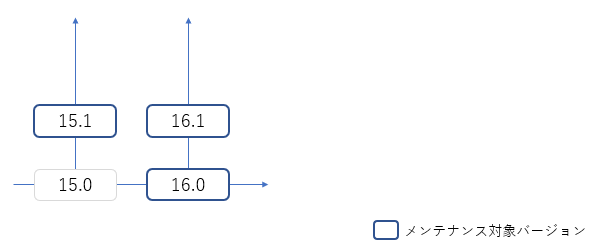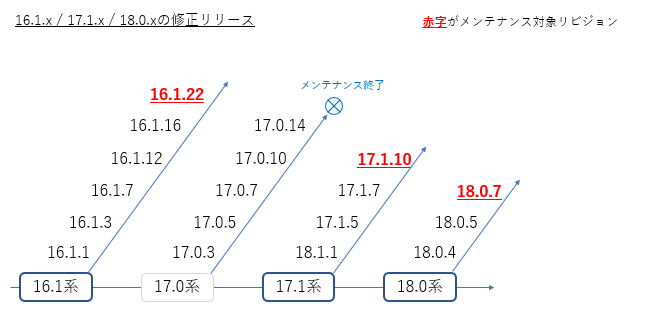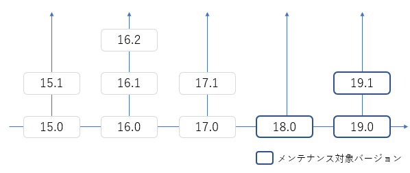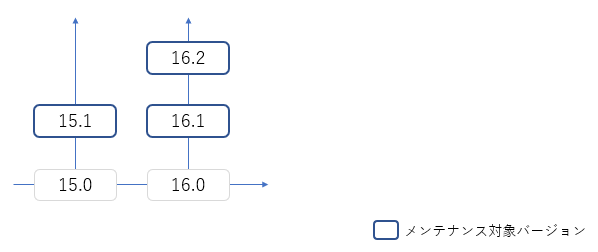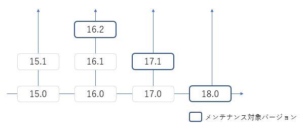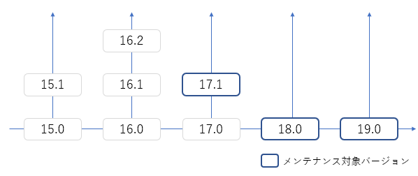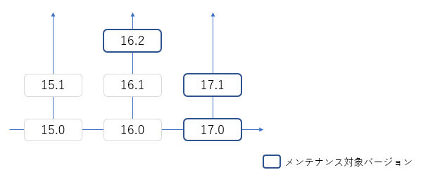 となります。その後、17.1がリリースされると15.1がメンテナンス対象からはずれ、